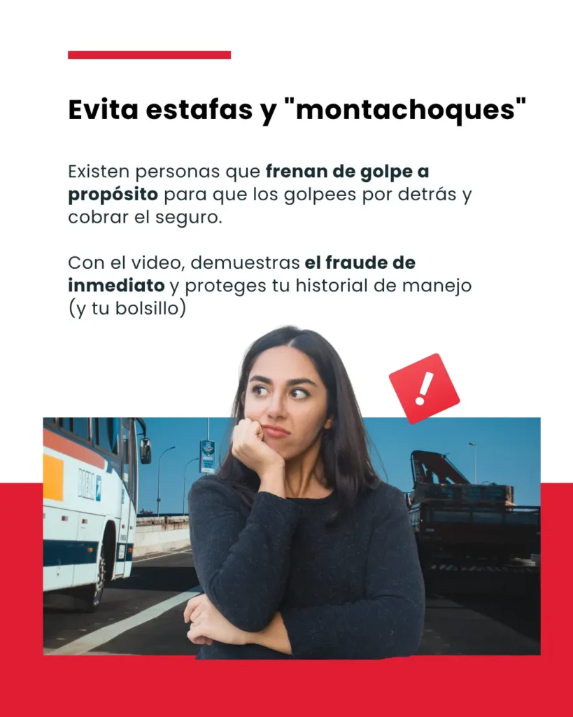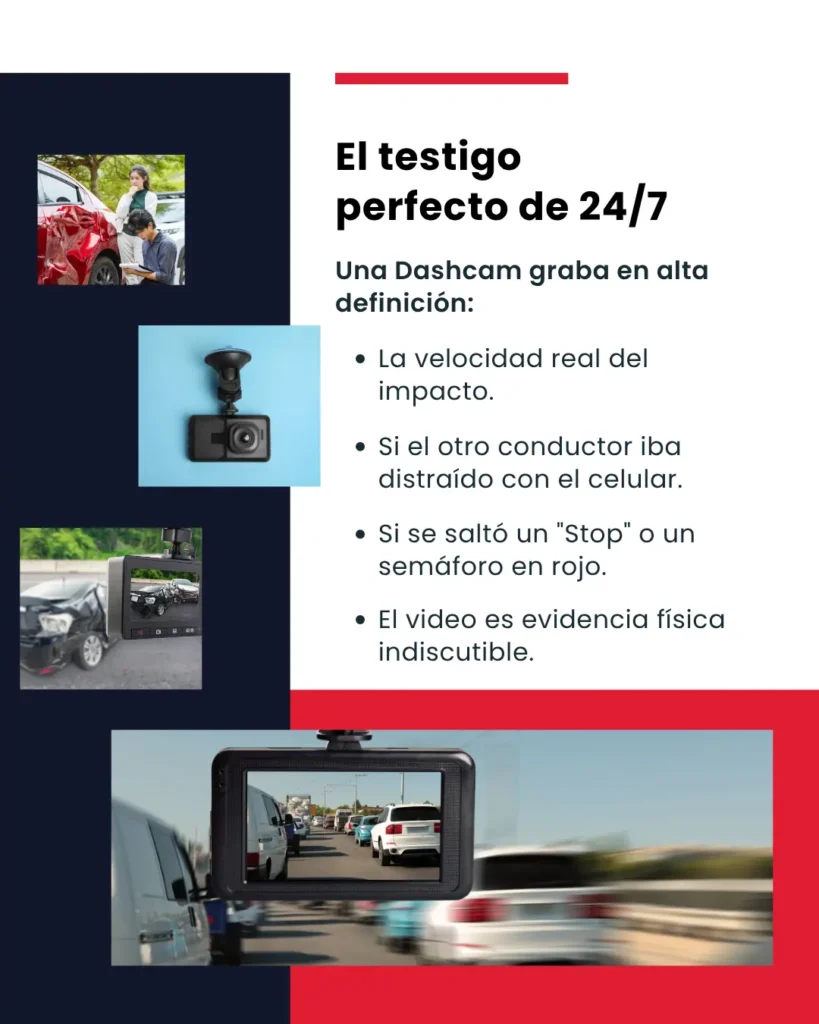 Su función principal es documentar lo que ocurre en la carretera y capturar evidencia en tiempo real antes, durante y después de un accidente.