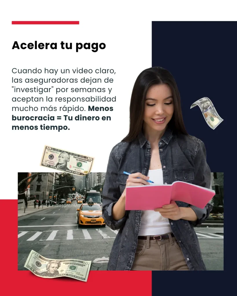 Cuando existe video claro mostrando la negligencia de la otra parte, las aseguradoras tienen menos margen para disputar responsabilidad.